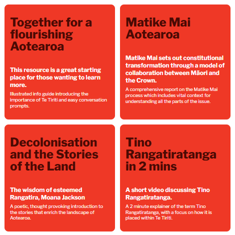 Together for Te Tiriti have gathered a handful of helpful, accurate and credible resources that might help you learn more about Te Tiriti.